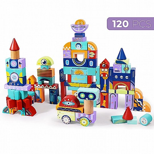 קוביות עץ מצויירות 120 חלקים דגם חלל