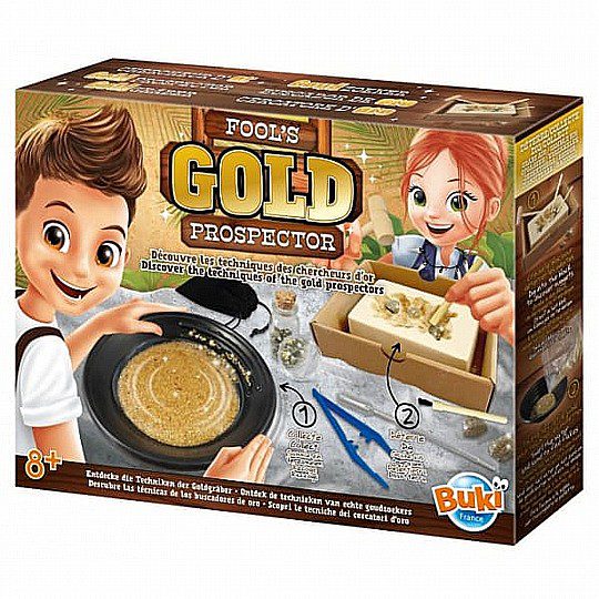 הבהלה לזהב הגיע! ערכה לחיפוש זהב (של שוטים) מבית בוקי צרפת הערכה מאפשרת שתי טכניקות חיפוש זהב שכדאי לגלות: הפרדה בין זהב לחול באמצעות מים וכריה כדי לחפש גושי זהב. הערכה כוללת: צלחת הפרדה, פטיש, אזמל, פיפטה, פינצטה… מתאים לילדים מגיל 8 שנים ומעלה